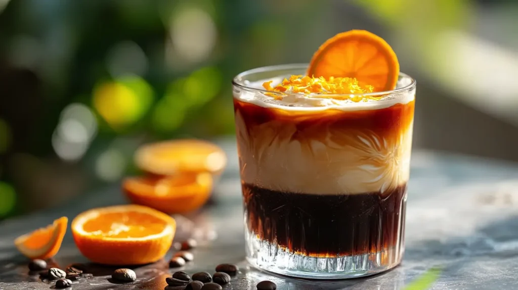 - Свежевыжатый сок: Добавьте 20–30 мл свежевыжатого апельсинового сока вместе с сиропом. Это придаст напитку более натуральную кислинку, свежесть и лёгкую текстуру.