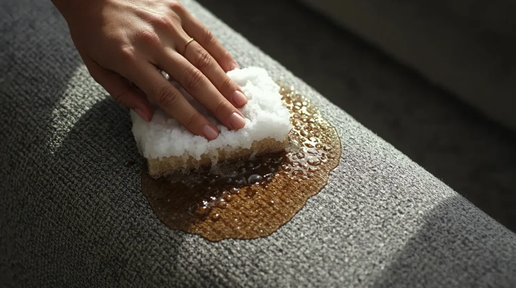 Главное правило чистки мебели от кофе — минимум воды. Избыток влаги = риск получить некрасивые водяные разводы (ореолы) или, что хуже, запустить рост плесени в наполнителе.