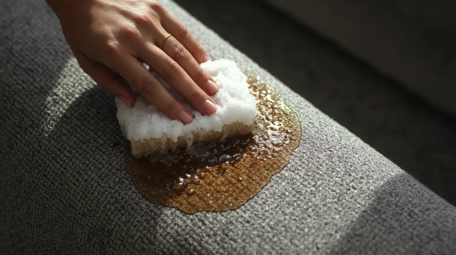 - Сода (пищевая): Мягкий абразив и щелочной буфер. Хороша в виде пасты (3:1 воды) для чистки мебели от кофе (на стойкой обивке) или белого хлопка. Риски: Не использовать на шерсти, шёлке, деликатной синтетике, алюминии.