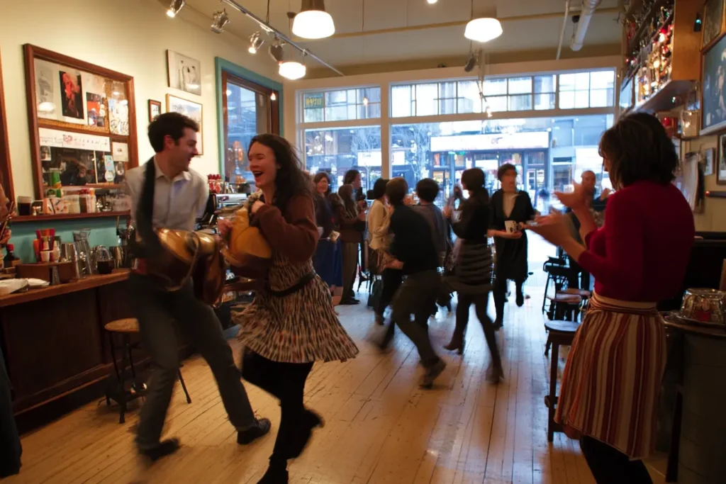 Итак, представь себе обычную кофейню. Уютное место, где ты привык брать латте по дороге на работу или встречаться с друзьями. А теперь добавь сюда диджея с зажигательным сетом (чаще всего это легкая, позитивная электроника, хаус или диско), пространство, освобожденное для танцев, и людей, которые пришли сюда не просто выпить кофе, а именно подвигаться, зарядиться энергией и пообщаться.