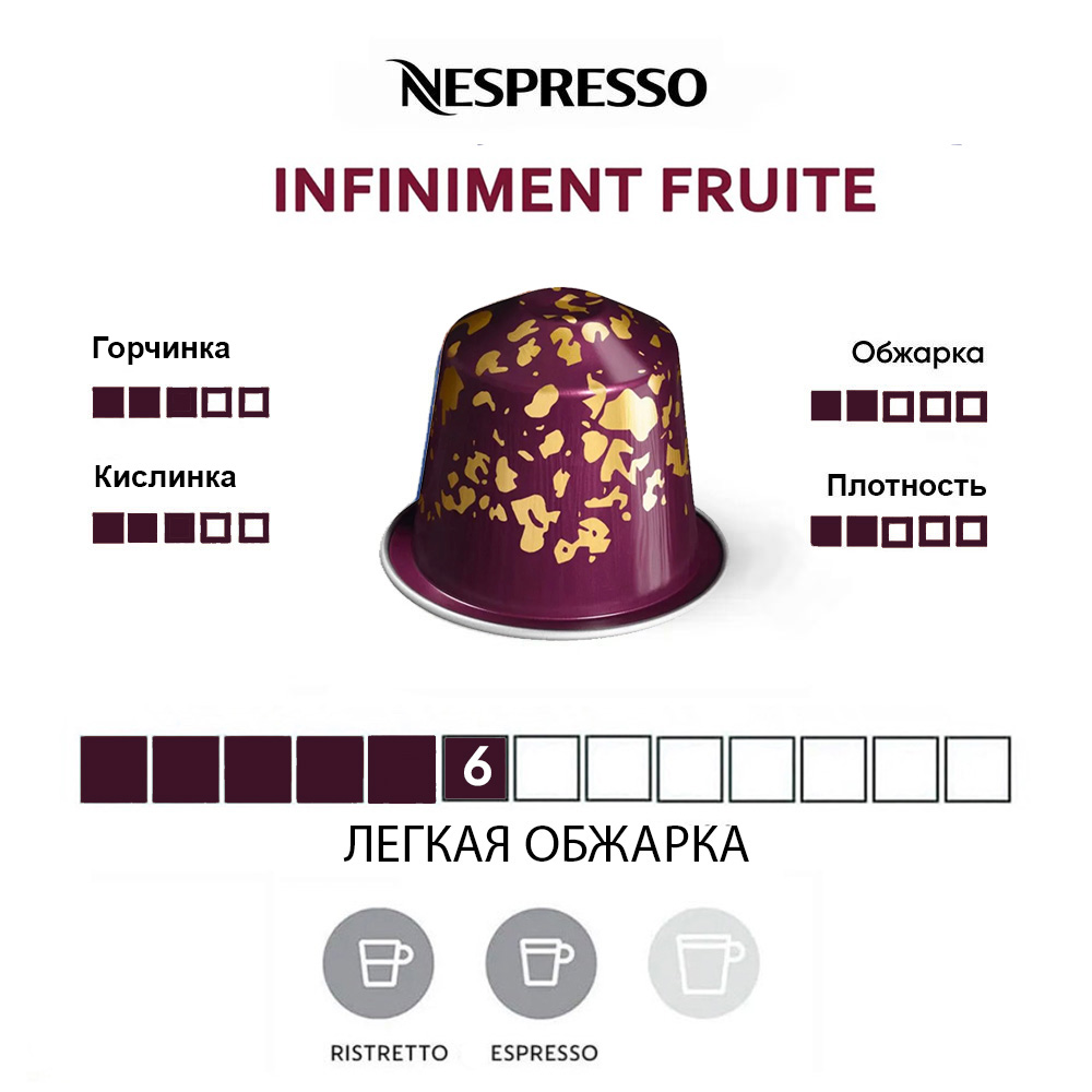 Капсулы Nespresso Original Infiniment Fruite — соблазнительный вкус малины с базовой смесью арабики из Южной Америки. Слегка обжаренный кофе уже обладает собственным ароматом