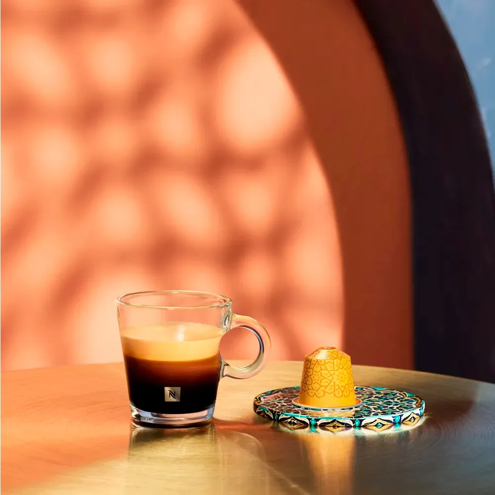 Кофе в капсулах NespressoWorld Explorations Coffee House Istanbul Espresso — этот насыщенный бленд ярко раскрывается волшебным ароматом спелых диких фруктов с деликатным миндальным оттенком. Густая и бархатистая текстура турецкого кофе, сочетание эфиопской арабики и индийской робусты в этом бленде напоминают нам о культуре великого города на перекрестке кофейных торговых путей. Наслаждайтесь им как местный житель: в паре с бокалом воды и кусочком рахат-лукума.