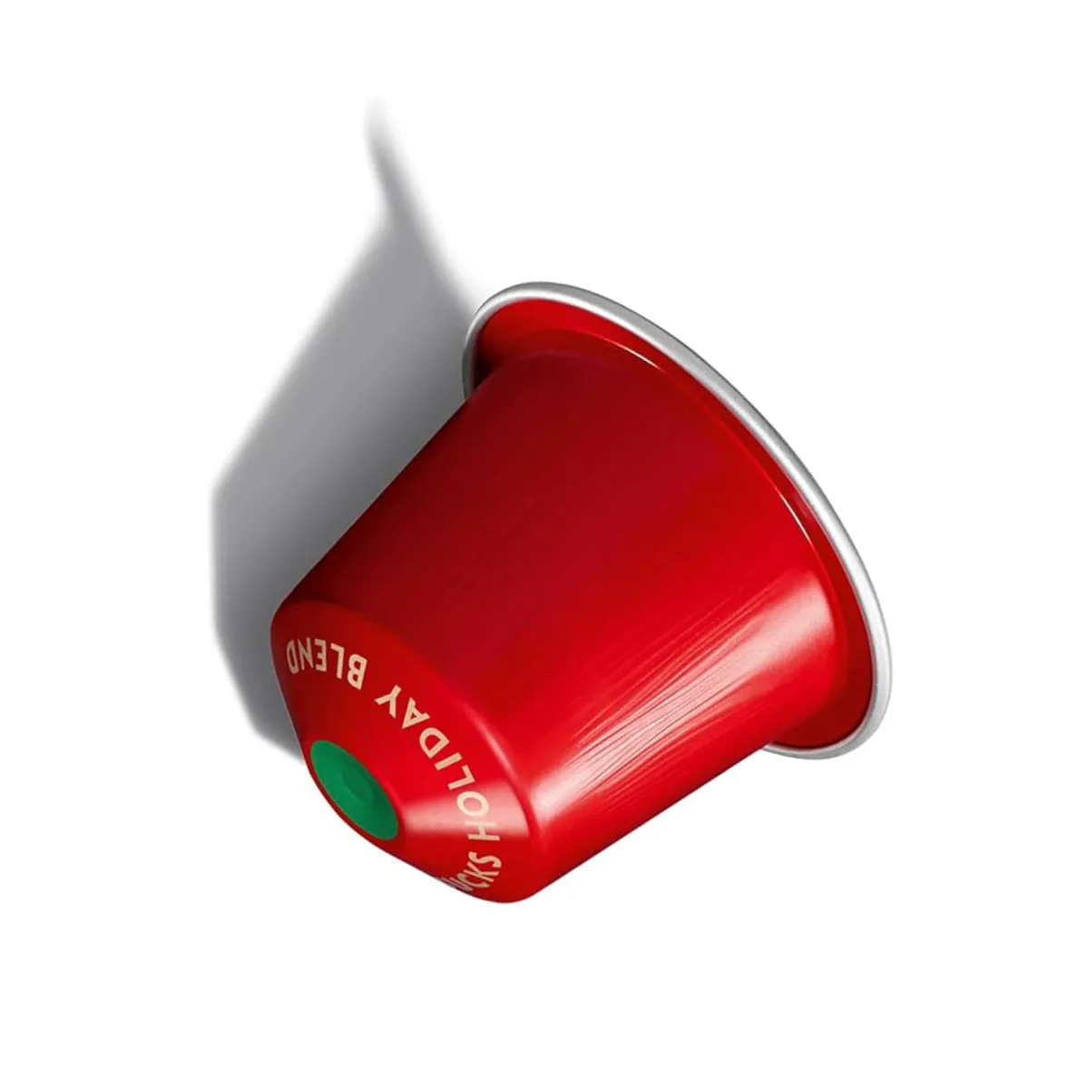 Капсулы Starbucks Nespresso Holiday Blend Limited Edition — многогранный, сбалансированный вкус со сладкими оттенками и кленовыми нотками в ограниченной серии капсул Starbucks Holiday Blend средней обжарки для кофемашины Nespresso. Обжаренные зёрна с яркими, насыщенными нотами из Латинской Америки и зёрна с мягкими древесными нотами из Индонезии раскрывают все богатство