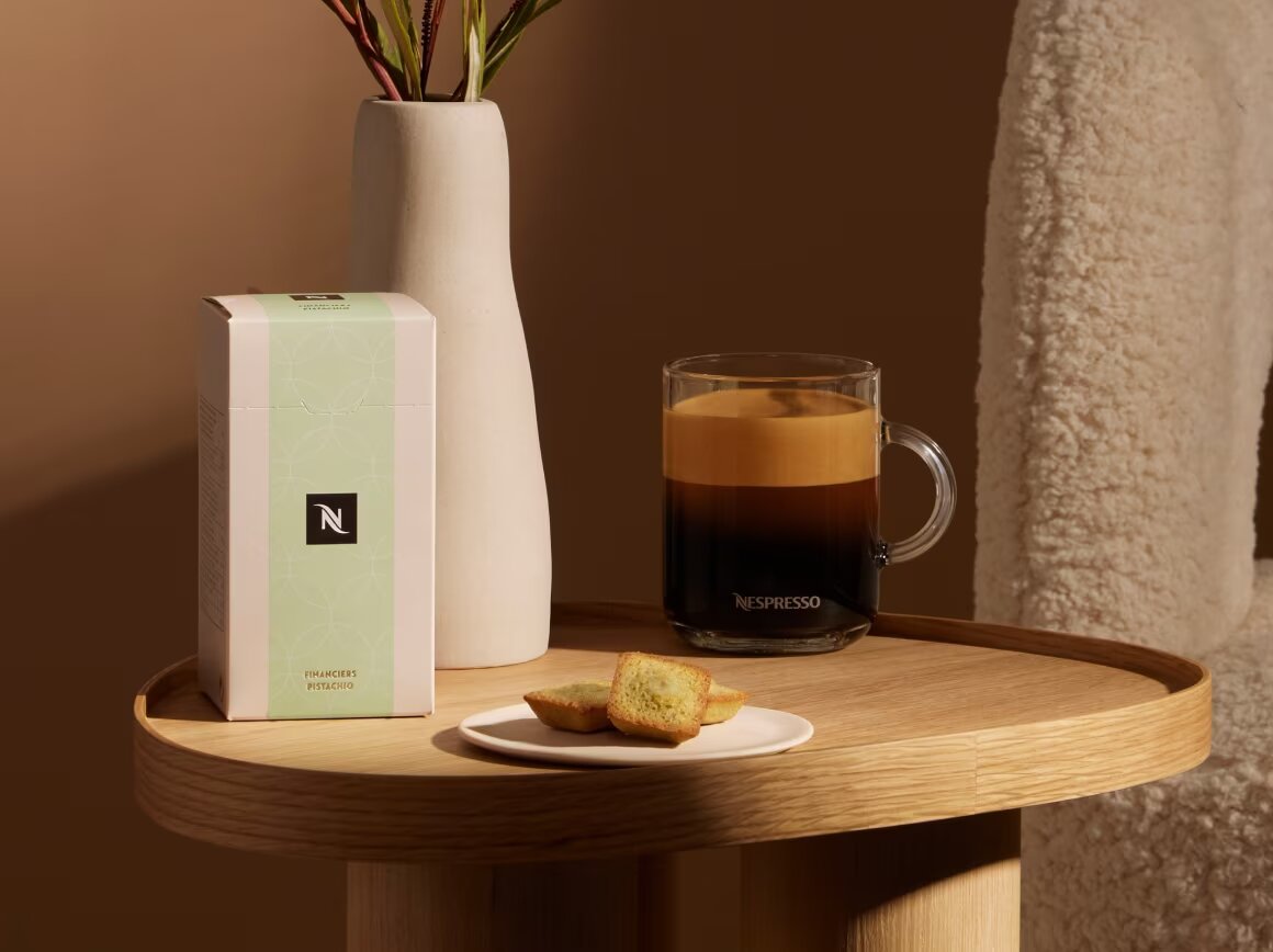 Nespresso Sweets печенье Financiers Pistache — мягкие, кремовые мини-кексы с миндалем и фисташками приготовленные по уникальному французскому рецепту. Кусочки молотых фисташек придают печенью неповторимый вкус.