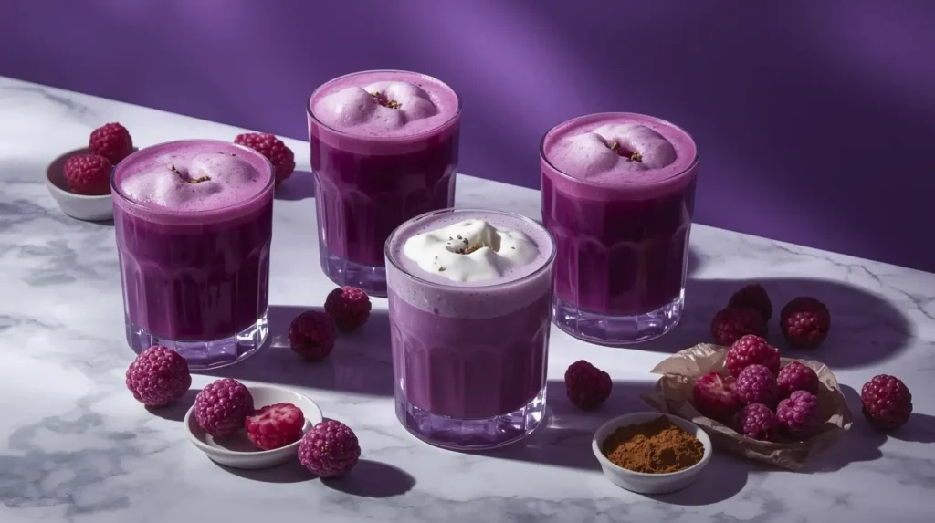 - Тайной и неизведанным: Фиолетовый цвет обещает новый вкусовой опыт, отличный от привычного коричневого кофе или белого молока.